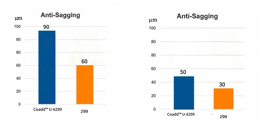 Coadd™ U-6299 prevents segmentation during storage, effectively enhancing storage stability. During application, its viscosity drops rapidly; coupled with excellent anti-sagging properties, it ensures smooth spraying and brushing, resulting in uniform coatings without sagging.